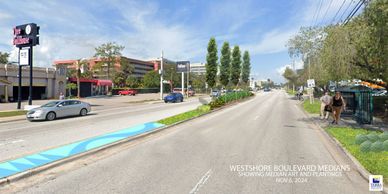 Hired by the Westshore Alliance which is a consortium of local business to oversee the infrastructure in the central corridor median of Westshore Boulevard, in Tampa, Florida. TTDG provided project management, permit coordination as well as conceptual design, planting & irrigation design and lighting design for the medians and then the painting of the concrete medians to provide color and intertest using the Westshore Alliance color theme.